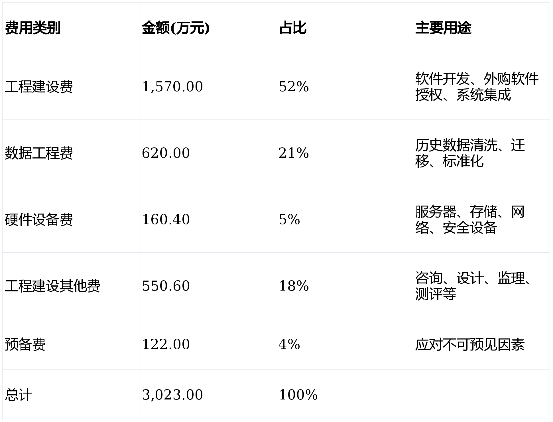 工程建设费:占总投资52%,包括软件开发费(1,250万元)与外购软件及集成费(320万元)。软件开发采用功能点分析法(FPA),依据GB/T 36964-2018标准,基于3,500个功能点进行测算。